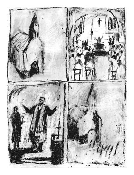 Un village trop haut perché dans les montagnes, des silhouettes fragiles qui s’approchent trop près des sommets. Aux disparitions qui se succèdent, répondent une absurde fanfare funéraire et l’incessant ballet des charognards dans le ciel...
