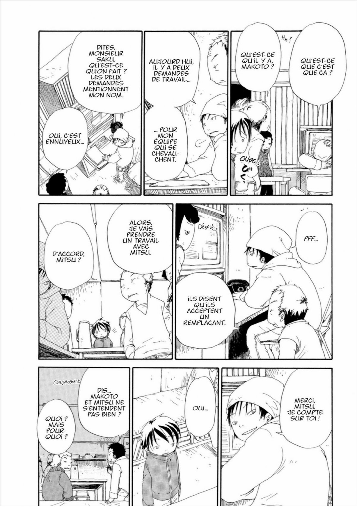 Mitsu continue son travail de laveur de carreau à l’extérieur de l’anneau. Mais ce n’est pas de tout repos ! Une fois par semaine, il doit laver les carreaux au niveau supérieur pour veiller sur la santé d’une vieille dame. Mais ce travail se fait avec Makoto et leur relation est très tendue ! Mitsu arrivera-t-il à amadouer la vieille cliente et Makoto ?