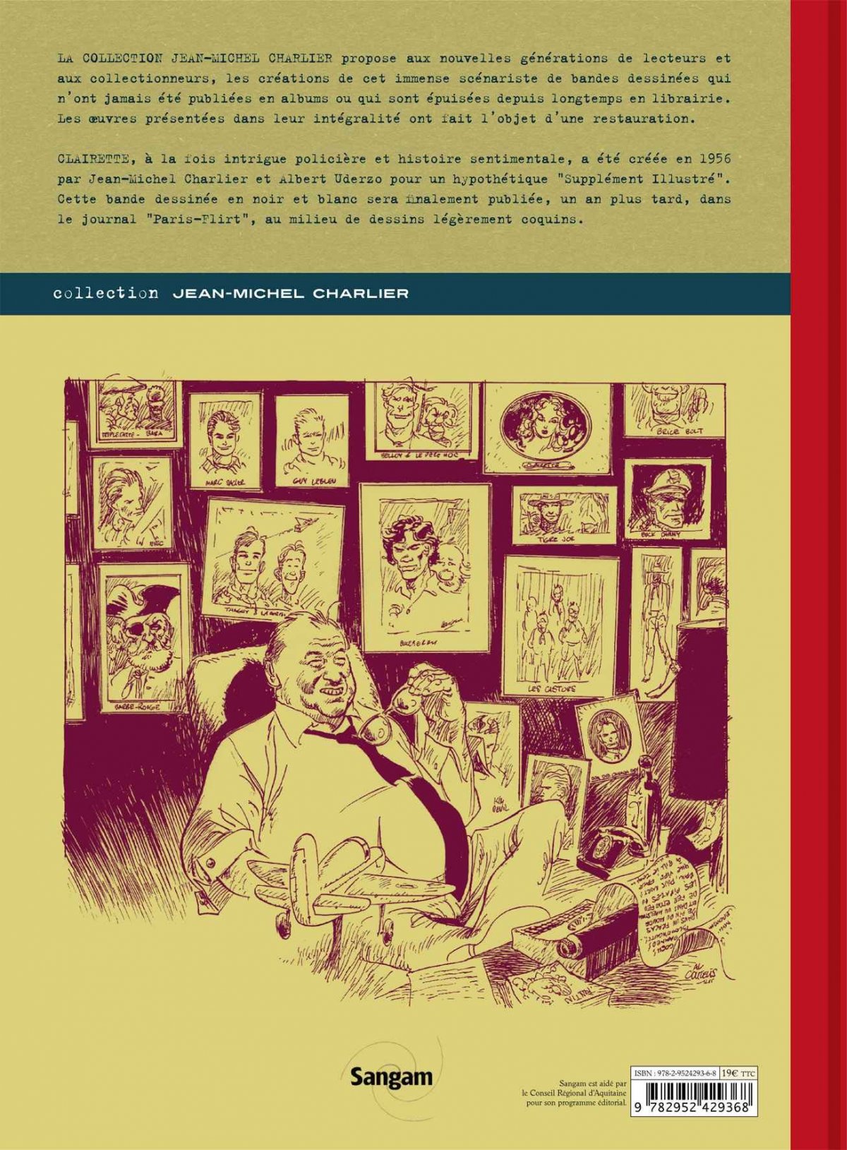 Le premier titre de la Collection Jean-Michel Charlier est « Clairette ». À la fois intrigue policière et histoire sentimentale, « Clairette » a été crée en 1956 par Jean-Michel Charlier et Albert Uderzo pour un hypothétique Supplément Illustré. Cette bande dessinée en noir et blanc sera finalement publiée, entre 1957 et 1958, dans le journal Paris-Flirt , au milieu de dessins légèrement coquins et d’autres séries de bandes dessinées. L’histoire débute lorsque la mère mourante de Clairette lui avoue l’existence de son demi-frère. Celui-ci inconnu de Clairette doit hériter d’une fortune considérable. La mère de Clairette lui demande de le retrouver. Mais une infirmière a surpris cette confidence. Elle convainc, Polo, un mauvais garçon, de jouer le rôle du demi-frère
