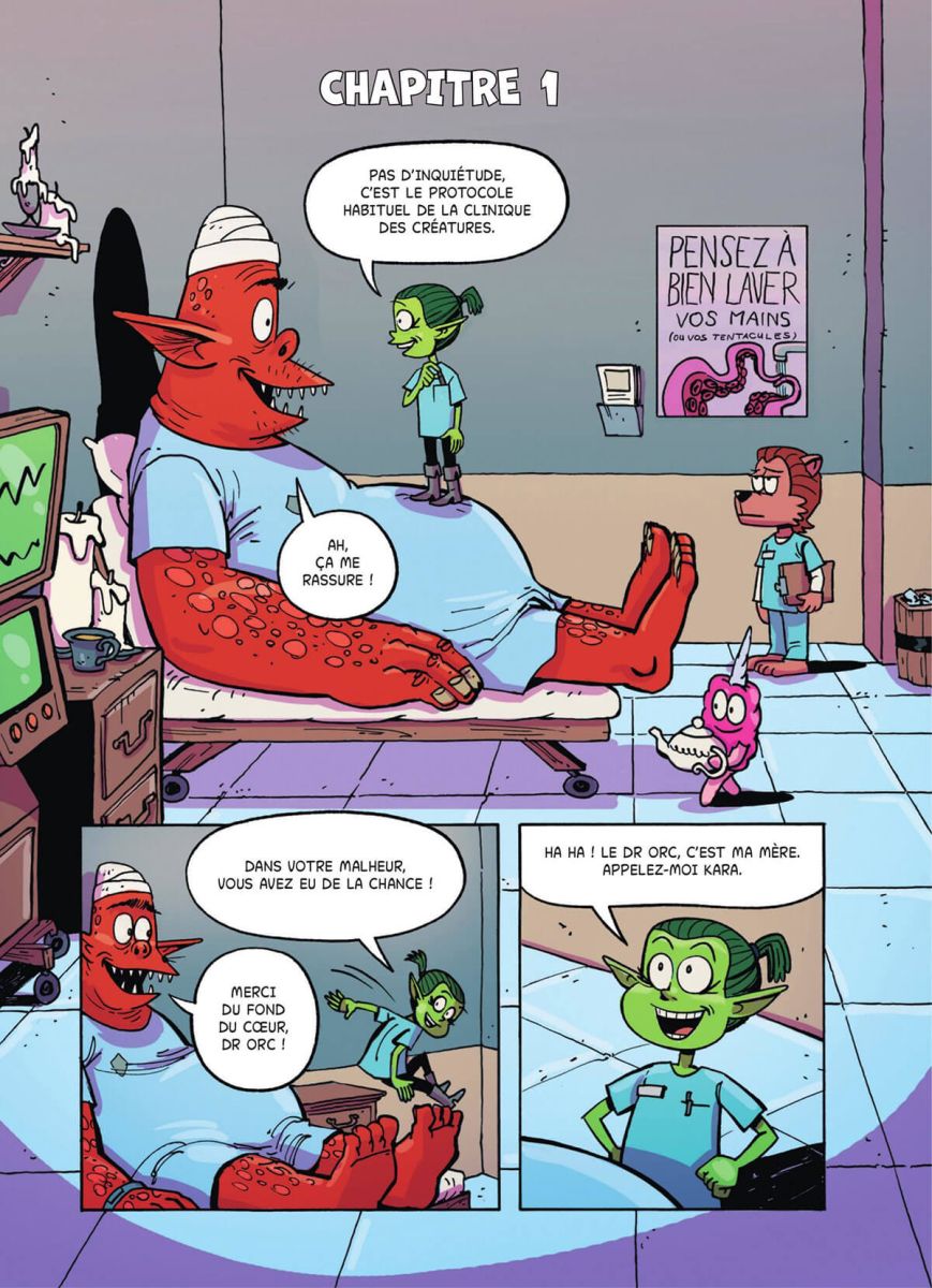 À la clinique des créatures on soigne tout le monde, sans distinction ! Des trolls aux licornes en passant par les fées et les géants... Tout le monde, à une exception près : les humains ne sont pas les bienvenus. Lorsque l’un d’entre eux se présente, Kara, jeune médecin, est prise de compassion. Mais osera-t-elle braver l’autorité de sa mère, qui dirige aussi la clinique ?