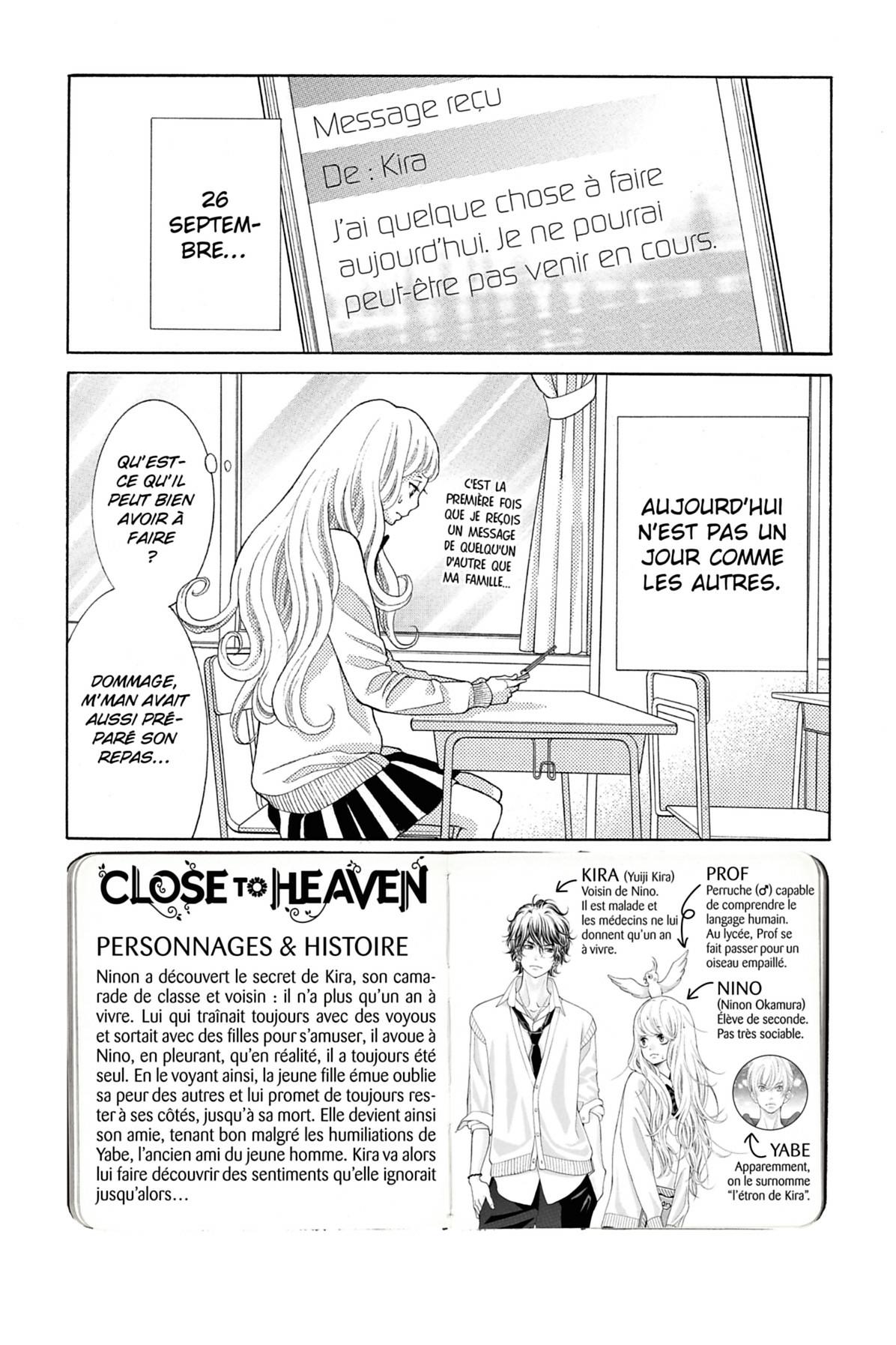 Entraînée par Yabe, Ninon se retrouve en train de suivre Kira, dans l’espoir d’apercevoir la fille dont il est amoureux. La surprise sera grande lorsqu’elle fera sa connaissance mais elle le sera encore plus lorsqu’elle surprendra, un peu plus tard, son ami en train d’embrasser l’infirmière du lycée ! Un comportement qui laisse Nino perplexe et triste. Alors, parviendra-t-elle à tenir la promesse qu’elle a faite à Kira de l’accompagner jusqu’à son dernier souffle ?