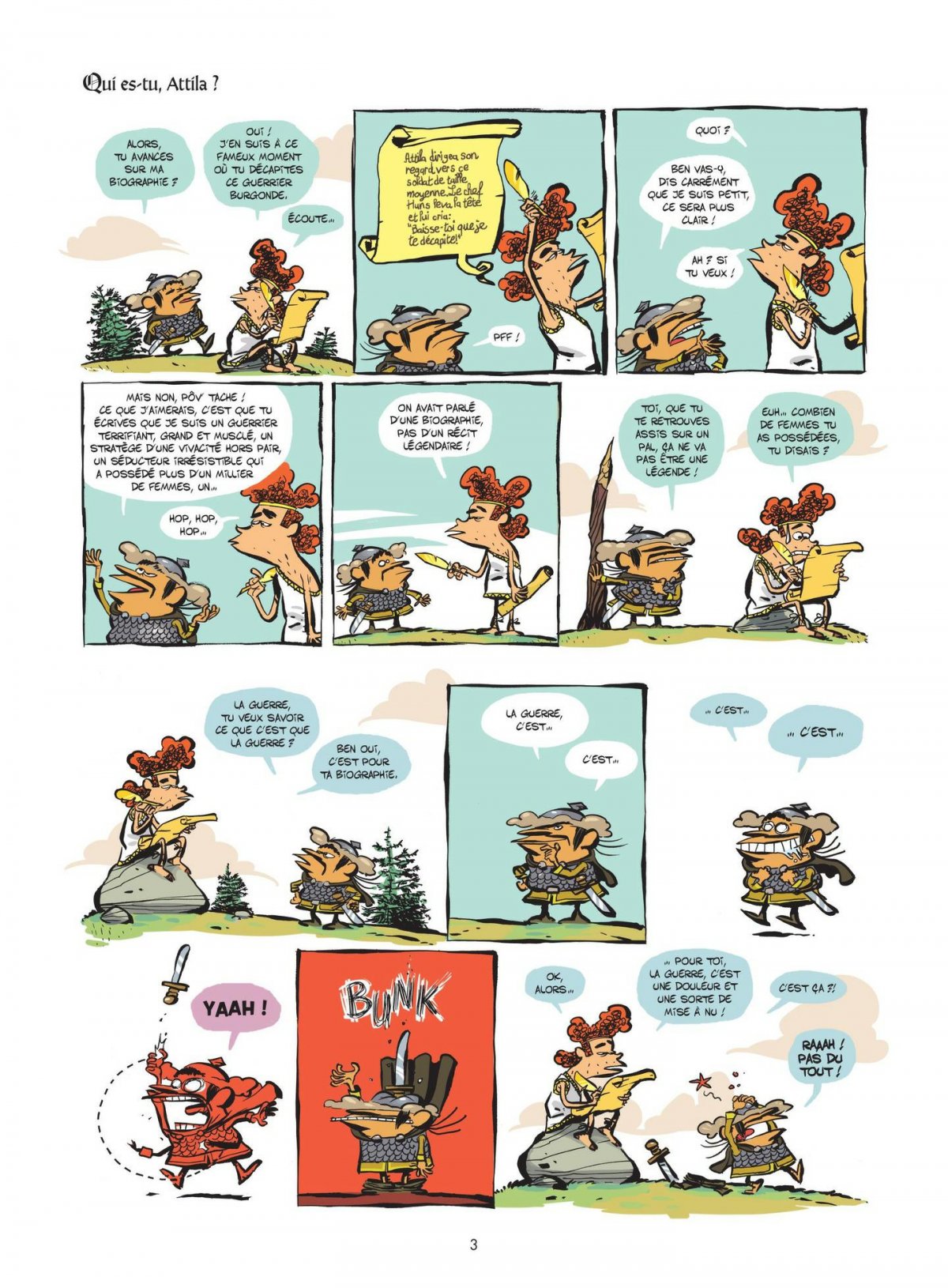 Partout où passe Attila... tout le monde se marre ! Après avoir donné la vie aux Huns, Dieu contempla son oeuvre et constata son erreur. Il les envoya au fin fond des steppes de l’Asie centrale dans l’espoir qu’ils se fassent oublier... et il les oublia. Pour se sauver d’un ennui mortel, Attila prend la décision d’envahir la Gaule, afin de retrouver la gloire et l’éclat d’antan. Mais les derniers fidèles prêts à le suivre se révèlent bien ramollo et peu motivés. Attila va leur concocter un entrainement spécial invasion. Seulement, la tâche est rude : c’est qu’il possède une sacrée équipe de baltringues !