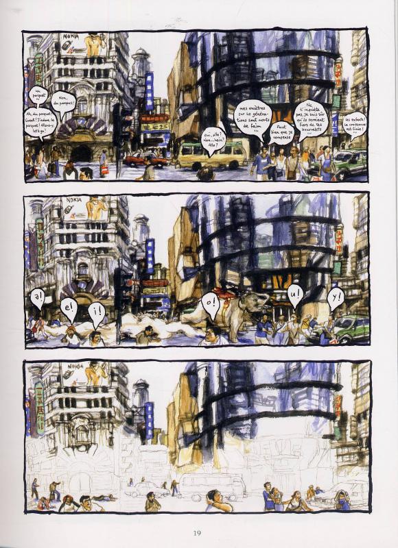 Sorte de déambulation onirique dans une mégalopole qui ressemble fort à celles qui poussent en Chine actuellement, Colibri se veut un récit improvisé, comme un long plan-séquence guidé par le pinceau. Mais derrière le numéro d’équilibriste, Colibri résonne en ces temps troubles comme un manifeste écologiste, une ode aux peuples premiers, en hommage au penseur pyrénéen Bernard Charbonneau, au compositeur Moondog et à Miyazaki