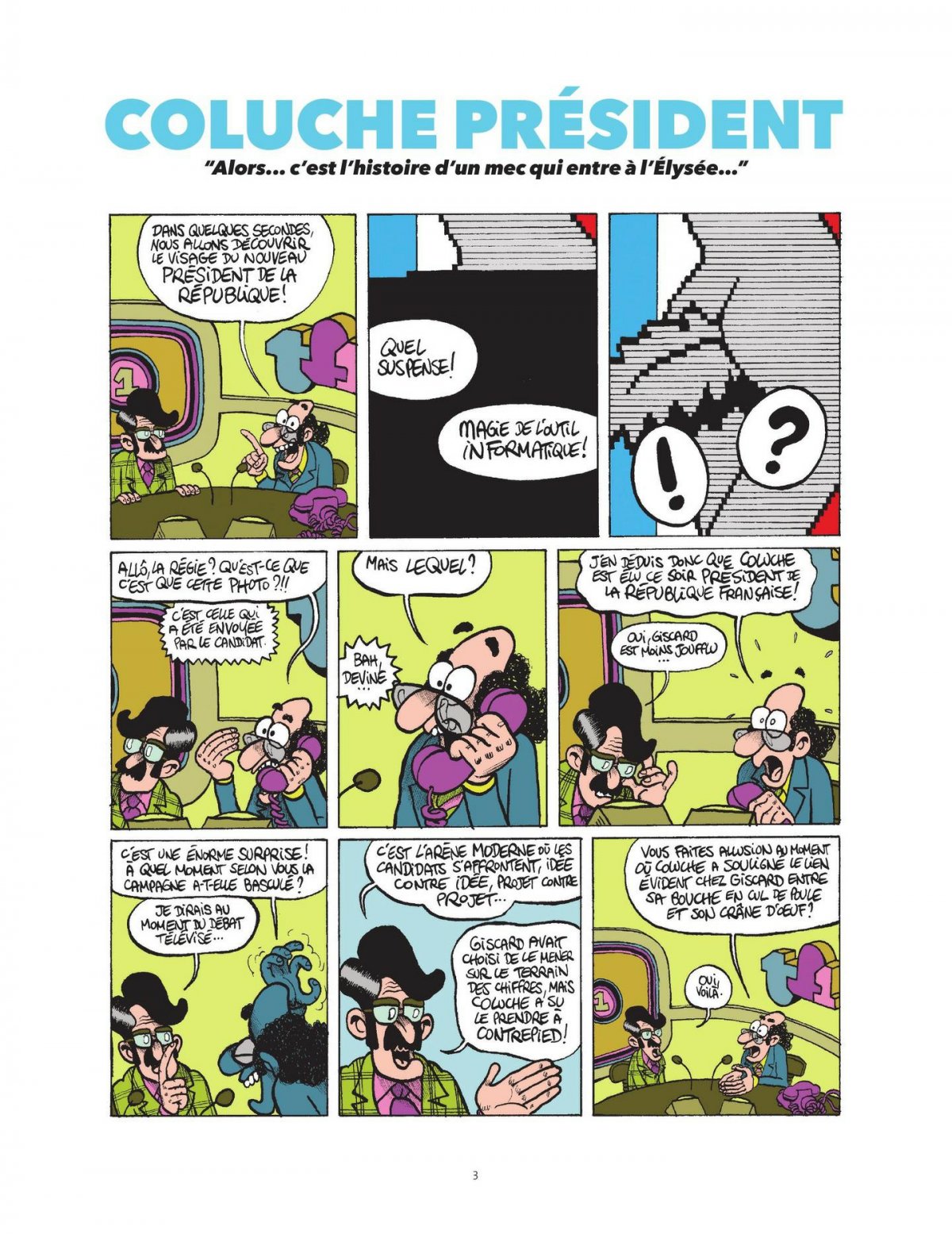Coluche Président ! est un album oneshot de Jean-Marcel Erre et Fabrice Erre, paru en 2020. Selon nos informations, il n'en existe qu'une seule édition, publiée par Fluide Glacial / Audie.