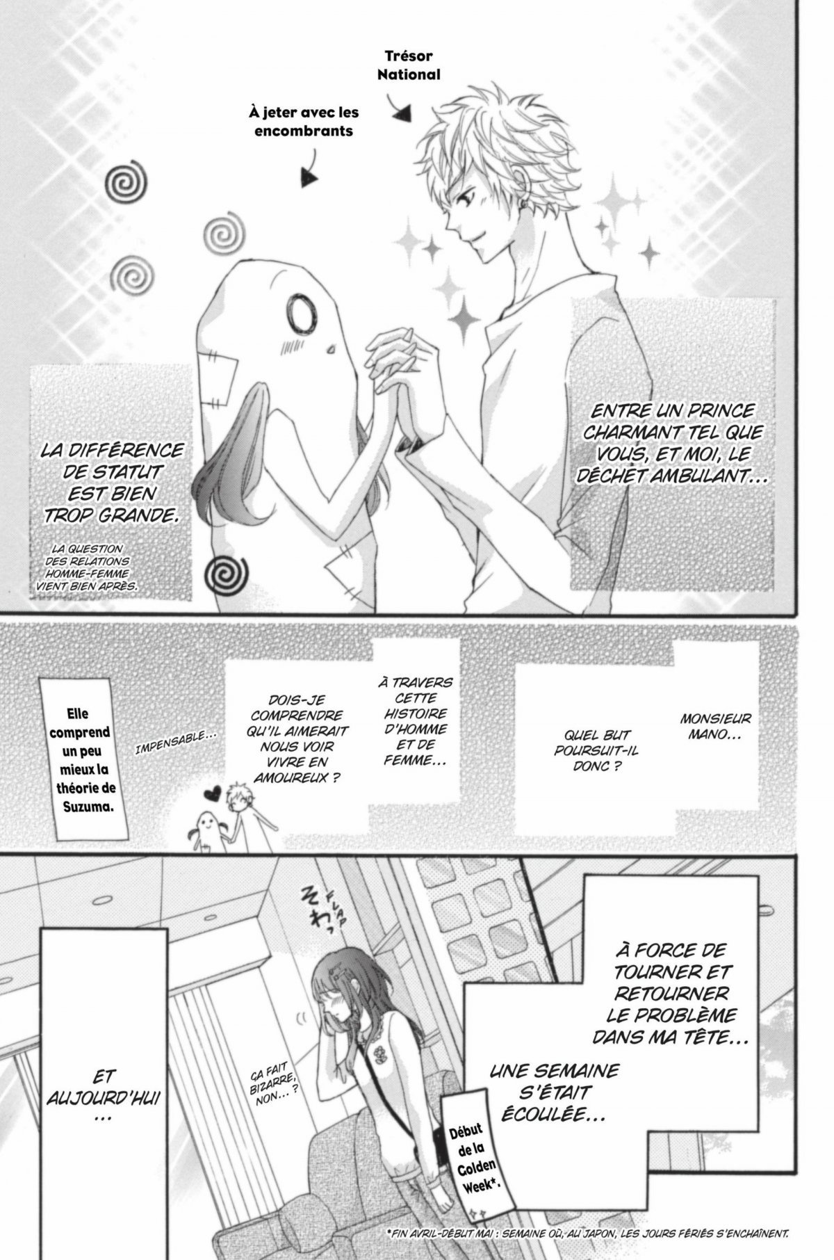 Fumiya Mano, l’hôte et maître de Mirei, lui demande soudain d’essayer de voir l’homme en lui. Et, cerise sur le gâteau, il lui propose de resserrer leurs liens par un rendez-vous galant !! Mirei ignore à quoi s’attendre avec un jeune homme d’un tel standing, mais elle se se sent peu à peu devenir une sorte de Cendrillon moderne !?