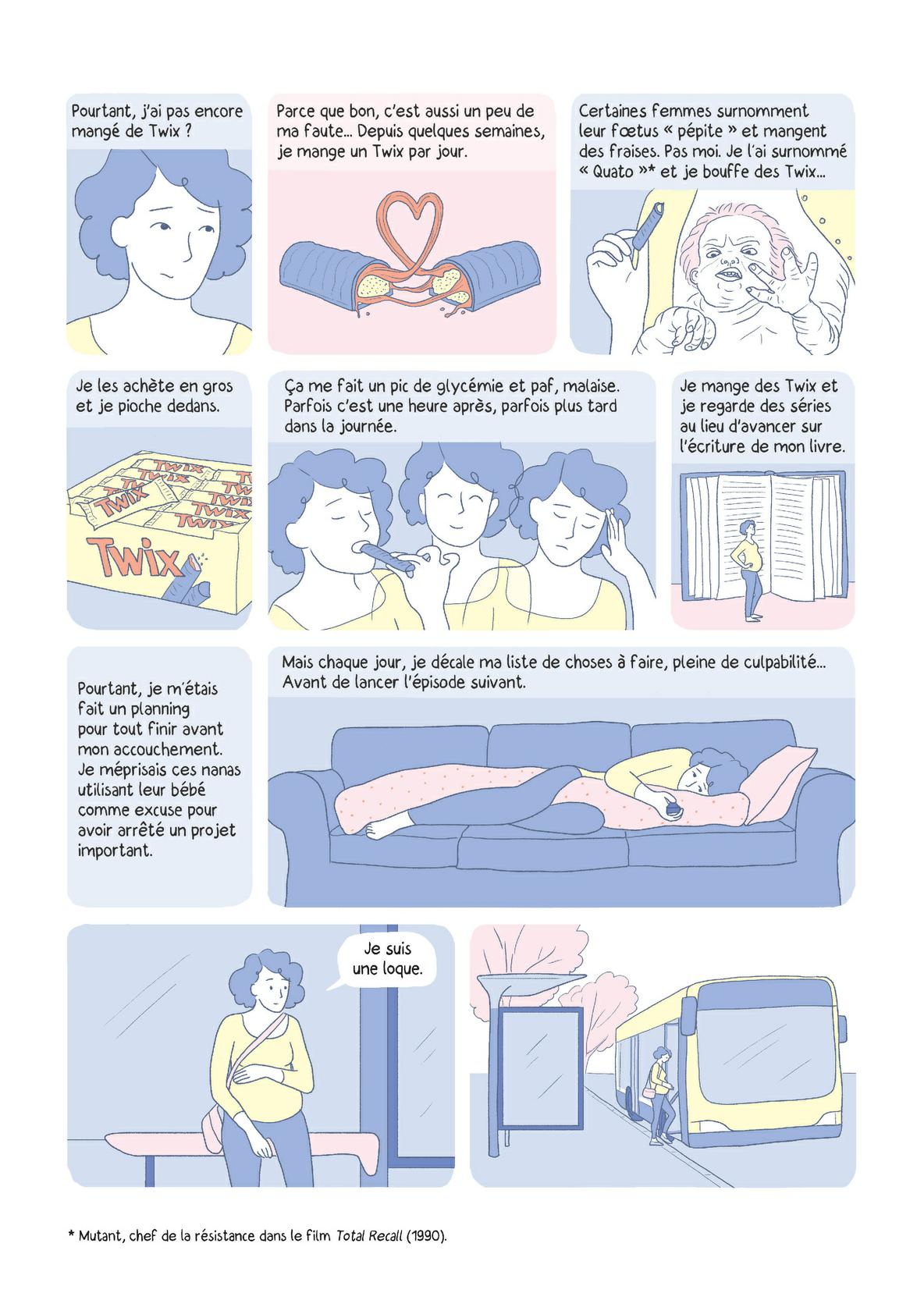 Amandine est graphiste, et dans sa vie professionnelle comme privée, tout doit être parfait. Entre le boulot et l’écriture d’un roman, elle n’a pas le temps de se préparer à l’arrivée de son futur enfant. D’ailleurs, elle n’a qu’une hâte : que sa grossesse se termine