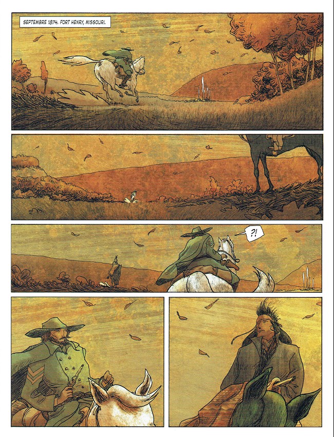 Septembre 1874, Missouri. Un cavalier avance dans la plaine chauffée à blanc. C’est un officier de cavalerie. Sur une petite butte, juché sur son cheval appaloosa, un Indien l’observe.