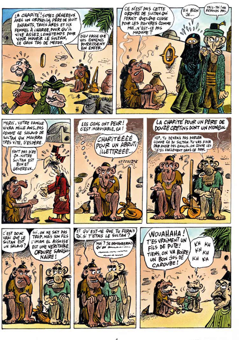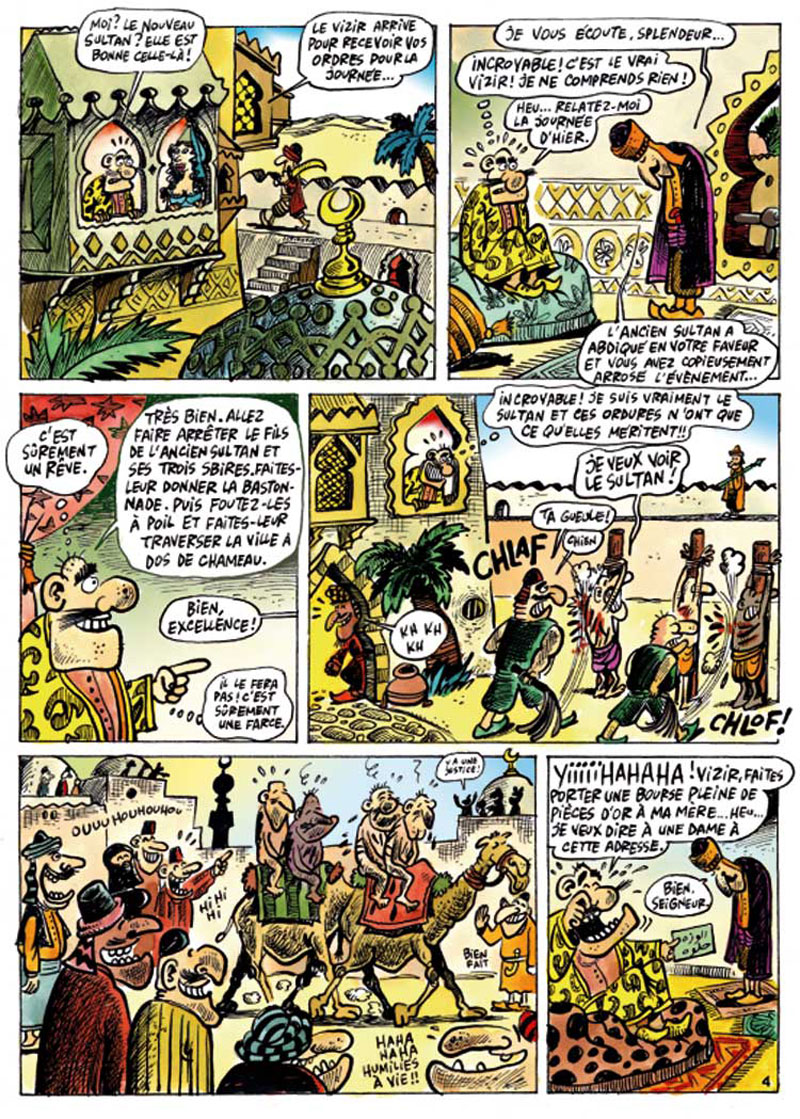 Les mille et une nuits : un océan de contes inoubliables, imbriqués les uns dans les autres. Des personnages magiques à perte de vue : djinns, éfrits et autres goules qui illuminent l’imagination des lecteurs pour plusieurs générations.Traduites pour la première fois en français il y a 300 ans, ces fameuses « nuits » peuvent faire l’objet de différents niveaux de lecture... Il faut dire que dans ces histoires, il y a avant tout des hommes aux prises avec leur « charmante » nature et leurs tendres faiblesses...Les Contes d’un conteur constituent l’interprétation à la sauce Carali (ancien de la bande à Hara-Kiri, né sous ces latitudes) du phénomène. En revisitant les morales de chaque conte, l’auteur développe tout un univers de délire et de cynisme, dans un style qui semble mélanger improvisation et défouloir.