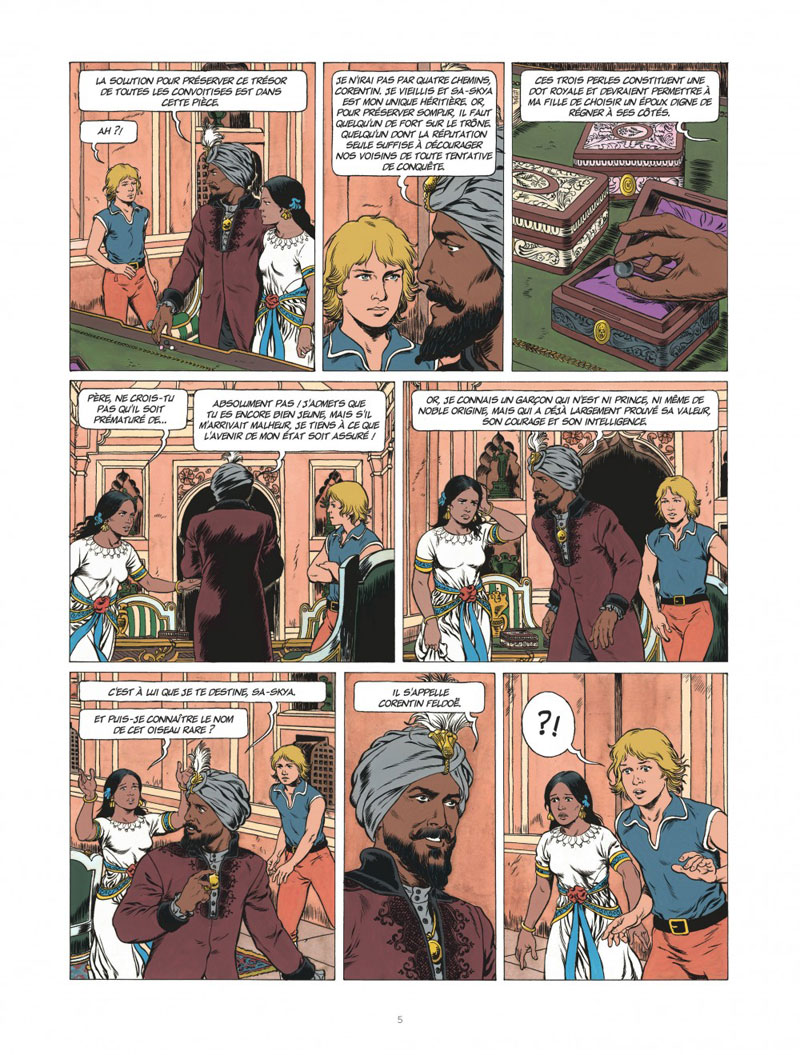 Accusé à tort du vol de trois perles d’une valeur inestimable, Corentin est menacé de bannissement par le Maharadjah de Sompur. Il ne pourra compter que sur l’aide de ses derniers amis – Kim, Moloch et Belzebuth – pour sauver son honneur et démasquer le vrai coupable.