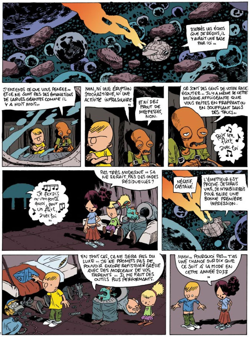 Martina et Gildas sont devenus des héros. Aussi a-t-on créé en leur honneur une espèce de musée spatial, qui rassemble les échantillons les plus parlants de la civilisation terrienne : une chanson de Michel Delpech, un bob Ricard, une 4L, un ascenseur taggé et quelques crottes de chiens