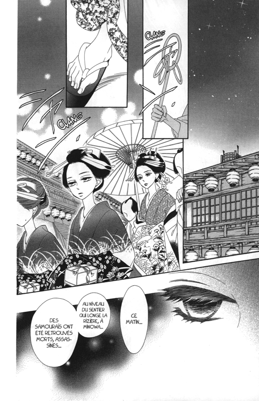 À l’époque d’Edo, dans le quartier des plaisirs de Yoshiwara, la jeune Akane a décidé, de son plein gré, de se faire embaucher dans une grande maison close afin de mener son enquête sur l’assassinat de ses parents. Alors qu’elle se rapproche dangereusement de la vérité, Akane se sent sans défense devant la toute-puissance de son ennemi. Elle est touchée par le soutien désintéressé et total de Sôsuke... et lui propose de passer la nuit ensemble.