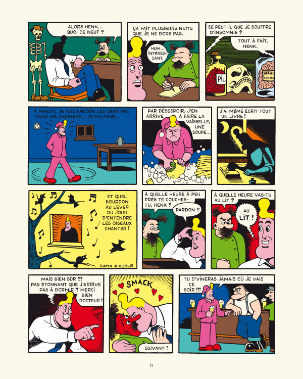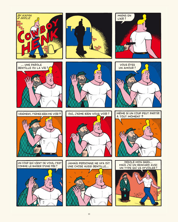 Le célèbre héros à la houpette blonde venu de Belgique est enfin de retour ! Désormais inscrit officiellement au patrimoine mondial (prix du Patrimoine à Angoulême en 2014) et après avoir revêtu ses plus beaux habits de professeur d’histoire avec Histoire de la Belgique pour tous, il nous revient pour de nouvelles aventures toujours plus surréalistes ! Ce second volume, sous-titré L’Art actuel, ravira les fans et poursuivra sa conquête des territoires francophones et belgophiles. C’est dans un fonds de plus de 1500 planches existantes, réalisées pendant 30 ans chaque semaine pour l’hebdomadaire flamand Humo que les meilleures pages ont été sélectionnées et remises en couleur. Le premier volume tel que le Frémok l’a édité a déjà été publié en Espagne, en Finlande, en Norvège, en Suède, et le sera prochainement aux Etats-Unis par la légendaire maison Fantagraphics. L’icône pop et absurde part à la conquête du monde ! Cowboy Henk a été publié dans la cultissime revue RAW d’Art Spiegelman, avant de faire des apparitions en France dans Psikopat, L’écho des savanes ou HARA KIRI dans les années 80 et 90.