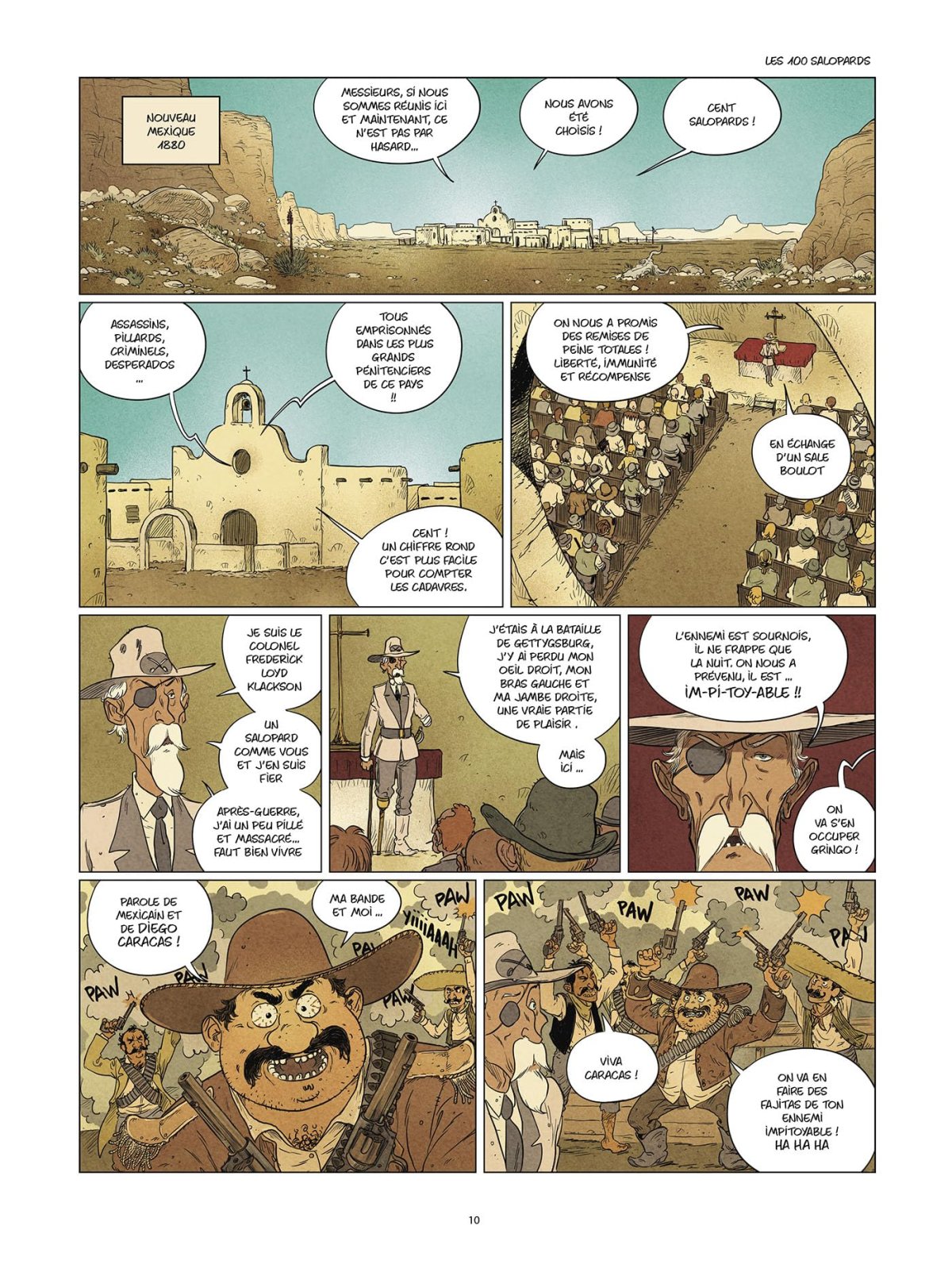 Une bande de détraqués, une troupe de siphonnés, une palanquée de cowboys complètement marteaux... c’est aussi ça la réalité du Grand Ouest ! New York, début du XXe siècle. Mlle Wiloughstone, journaliste à ses heures perdues, prépare son papier sur la collection privée des tableaux du magnat local. À sa grande surprise, derrière chaque toile se cache une histoire à dormir debout : les sombres fantasmes de Betsy, jeune femme sulfureuse résidant au fin fond du Bayou, le destin d’une funeste chasse au trésor en plein coeur de l’Arizona ou encore la terrible mission des 100 salopards du Nouveau-Mexique