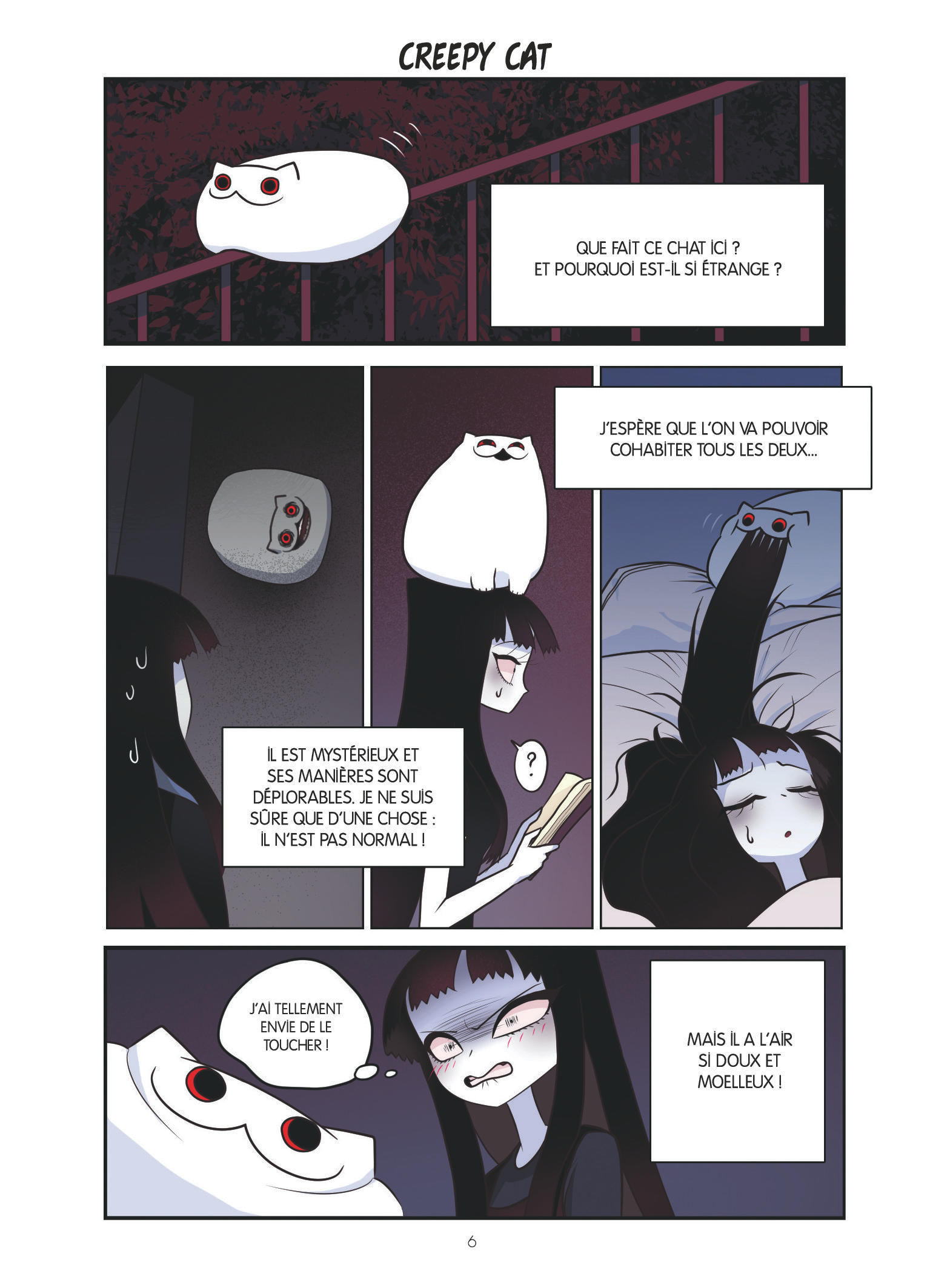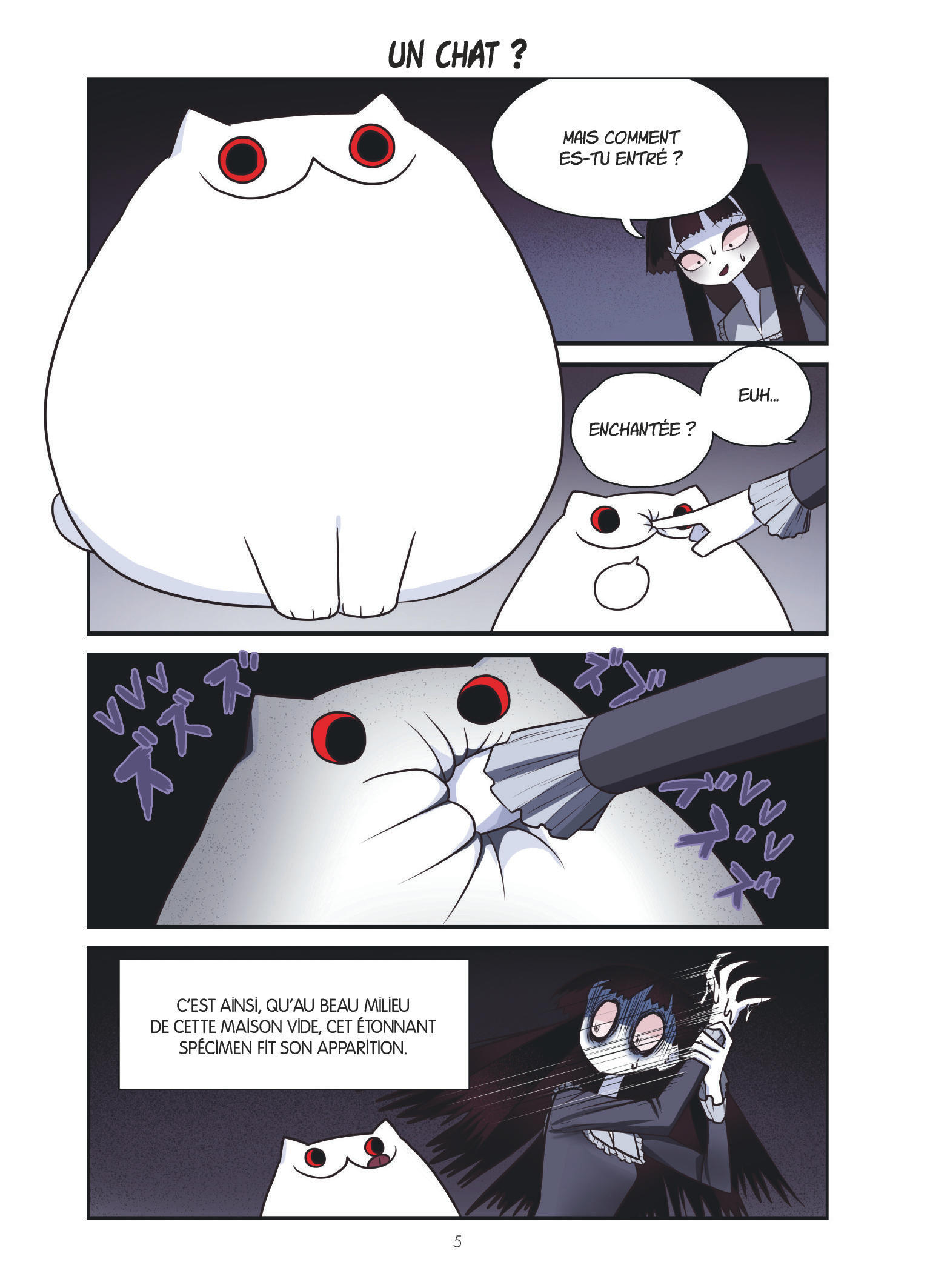 Les chats sont des êtres territoriaux : ils ont leurs habitudes et tolèrent difficilement que l’on envahisse leur monde. Le monde en question, c’est justement cette ancienne bâtisse aux allures gothiques dont la jeune Flora vient d’hériter. Et la cohabitation ne va pas se faire sans mal, le chat usant de tous les stratagèmes possibles pour énerver la nouvelle occupante des lieux ou perturber ses visiteurs, notamment son soupirant. La vie dans le manoir devient d’autant plus étrange que ce chat aux allures de motchi fantôme a d’étranges pouvoirs fantastiques. Il peut voler, se démultiplier, changer de forme, lancer des rayons laser du regard... en plus de tout ce qui fait qu’au naturel un chat peut être énervant ! L’autrice distille un humour léger et bienveillant autour de personnages originaux et excelle à mettre en scène les réflexes irritants de nos amis les chats.