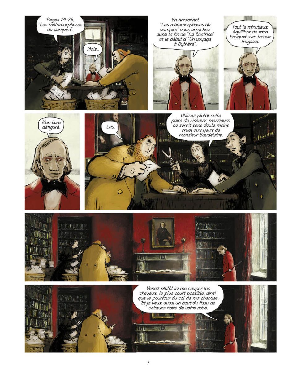 Dans ce troisième tome, la parution des Fleurs du Mal est un scandale sans précédent. Étrillé par la presse, moqué par les caricaturistes, Charles Baudelaire et ses éditeurs sont condamnés à de lourdes amendes (lui qui n’a pas un sou), et sont déchus de leurs droits civiques. Plus grave encore, il faut retirer six poèmes du recueil, soit arracher sur les exemplaires existants, les pages correspondantes, mutilant l’ouvrage et enlevant au passage d’autres poèmes...