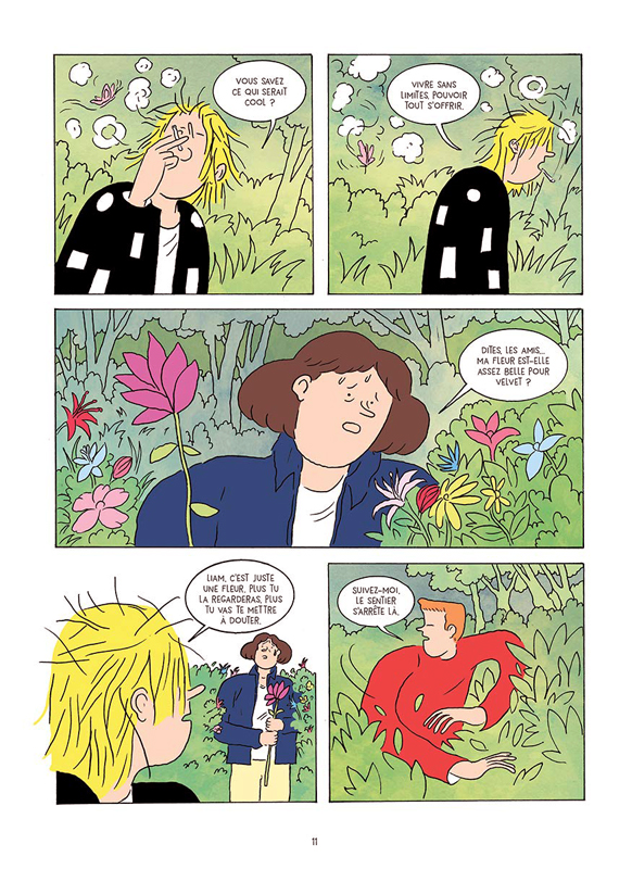 Trois garçons se rendent à une fête indé-rock au milieu des bois, où Liam, le plus timide et romantique des trois, a gagné une rencontre avec la célèbre Velvet, actrice vamp irrésistible. A peine sont-ils arrivés cependant, que ça dégénère : Velvet se prend pour une panthère et entraîne Liam dans les bois, tandis que les deux autres sont plongés malgré eux dans un « trip » de plus en plus dangereux, qui pourrait bien mener à la catastrophe… Une aventure identitaire sous forme de délire acidulé, jouissif et éclatant !