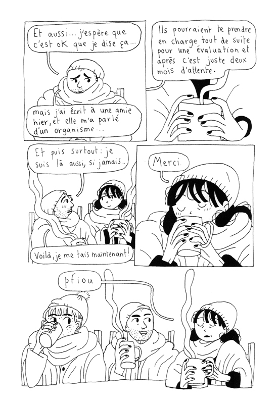 C’est comme ça que je disparais est une tranche de vie douce-amère, pop et très « nouvelle vague ». Mirion Malle nous entraîne au plus près des personnages et de leurs émotions, au plus près aussi du mal-être et de la dépression vécue par l’héroïne. Cette BD, qui est un véritable miroir tendu aux jeunes adultes du 21e siècle, aborde aussi en creux la question de la santé mentale et de la dépression. Mirion Malle, avec le talent qui est le sien, le fait avec énormément de sensibilité et de pudeur (avec humour aussi, bien sûr !), par petites touches impressionnistes composant un tableau particulièrement touchant et servi par une écriture remarquable.
