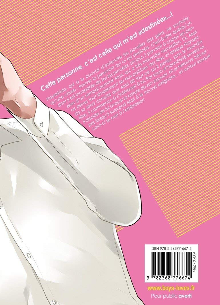 Hayashida, qui a le pouvoir d’entendre les pensées des gens, ne souhaite qu’une chose : trouver la personne qui lui est destinée, c’est-à-dire quelqu’un dont il est incapable de lire les pensées. Un jour, il parvient à capter les pensées d’un sempaï nommé Mori, qui a très mauvaise réputation. Or, Mori ne pense tout simplement qu’aux poitrines des filles, et lorsque Hayashida se rend compte que Mori dit tout ce qu’il pense, sans le moindre filtre, il commence à s’intéresser à lui. Par souci d’honnêteté envers lui, il décide de lui avouer la nature de son pouvoir, et se retrouve très surpris lorsqu’il surprend Mori à le trouver "mignon"... et surtout lorsque celui-ci se met à l’embrasser !