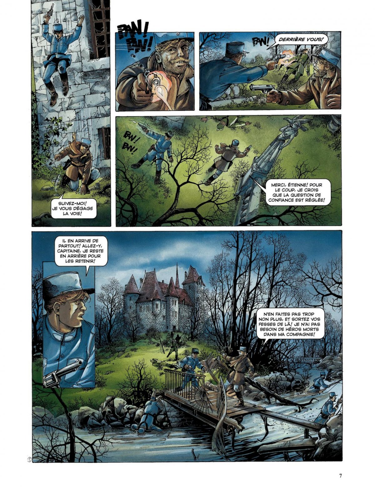 1915, sur le front. Un groupe de francs-tireurs français progresse sous une lune voilée en territoire allemand. Parmi eux, Étienne de Cazenac. Particularité : des pieux de bois acérés retenus par des linges serrés prolongent ses mains, telles des griffes. Trompe-la-mort est de retour