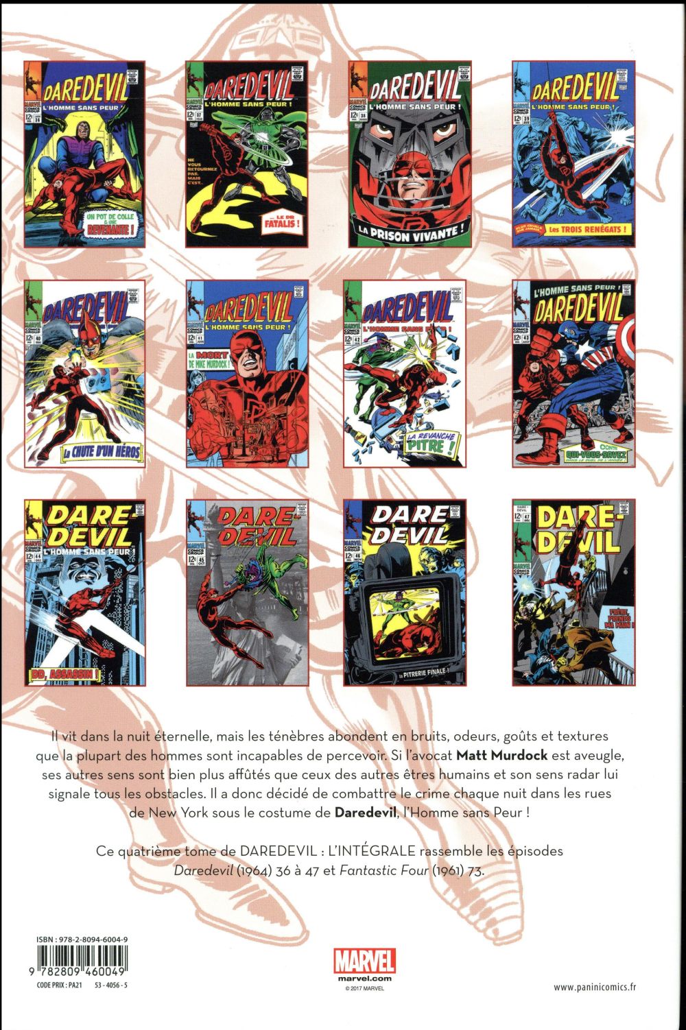 Daredevil Intégrale 1968 est le volume 4 de la série Daredevil Intégrale par Stan Lee, George Klein, John Tartaglione, Frank Giacoia, Vince Colletta, Dan Adkins, Joe Sinnott, George Tuska, Gene Colan et Jack Kirby, paru en 2017. Selon nos informations, il n'en existe qu'une seule édition, publiée par Panini Comics.
