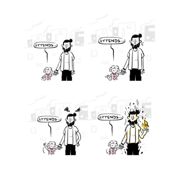 Ça sent fort le vécu et un peu la couche. Le daron, c’est un père de deux enfants qui raconte avec cynisme et amour son rôle de père plus ou moins mature. Les saynètes nous plongent dans un univers parallèle que tout parent ne connaît que trop bien : celui où le temps hésite entre le ralenti et l’accéléré. Vous voyez ? La longueur des nuits blanches, l’attente devant le petit bonhomme rouge du passage piétons, la boucle temporelle des manèges, la gestion des urgences... Dans cette dimension, la propreté devient relative, et chaque moment est un challenge avec une mini-victoire à la clé. Ce livre s’adresse aux parents, aux non-parents, aux futurs parents... et même ceux qui détestent les gosses.