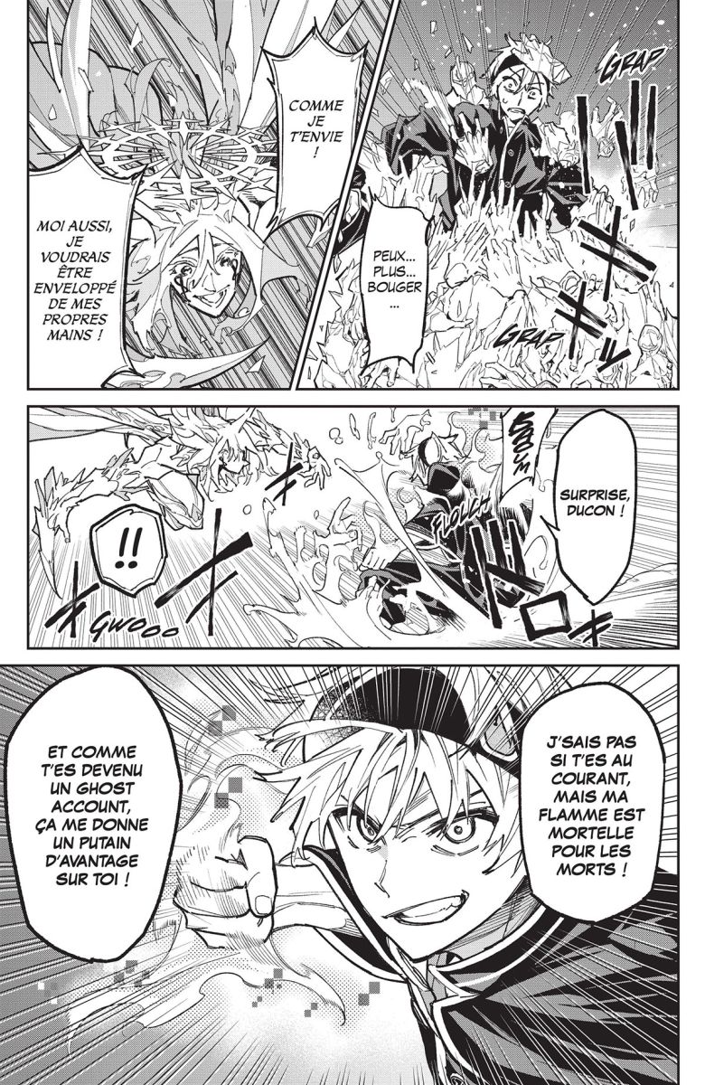 Alors que la victoire des 1-B se rapproche, une surprise de taille attend Sôji : Ban Ashina, son dernier adversaire, se révèle un partisan de K transformé en Ghost Account !