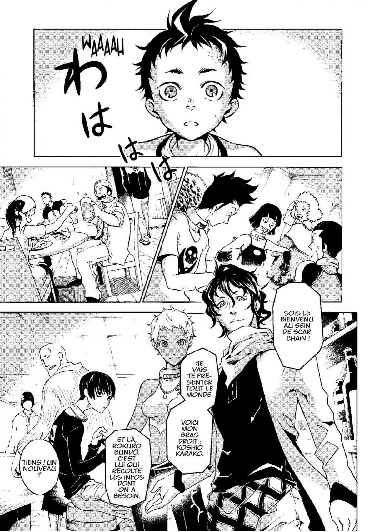 Ganta est sollicité pour participer à une opération mise au point par Scar Chain, le groupe de résistance de Deadman Wonderland. Il retrouve Shiro, mais la joie des retrouvailles est éphémère. Ganta doit faire un choix et se laisse convaincre par les paroles de Nagi, le chef de Scar Chain. Malheureusement, il y a un traître au sein du groupe, et ce dernier communique tout ce qu’il sait aux croque-morts, le groupe anti-deadman !! Pour Scar Chain, le jour de la révolution est enfin arrivé.