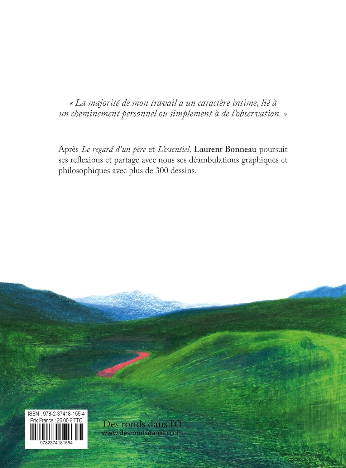 Après Le regard d’un père et L’essentiel, Laurent Bonneau poursuit ses réflexions et partage avec nous ses déambulations graphiques et philosophiques avec plus de 300 dessins." La majorité de mon travail a un caractère intime, lié à un cheminement personnel ou simplement à de l’observation. "