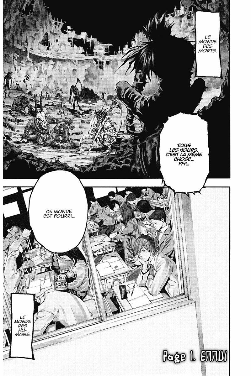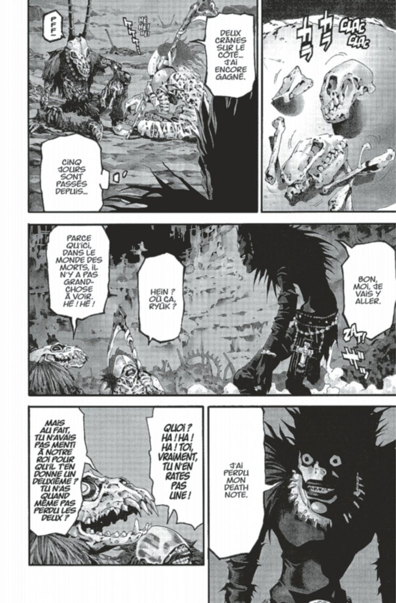 Selon les instructions du carnet, la personne dont le nom est écrit dans les pages du Death Note mourra dans les 40 secondes !! Quelques jours plus tard, Light fait la connaissance de l’ancien propriétaire du carnet : Ryûk, un dieu de la mort ! Poussé par l’ennui, il a fait entrer le carnet sur terre. Ryûk découvre alors que Light a déjà commencé à remplir son carnet...