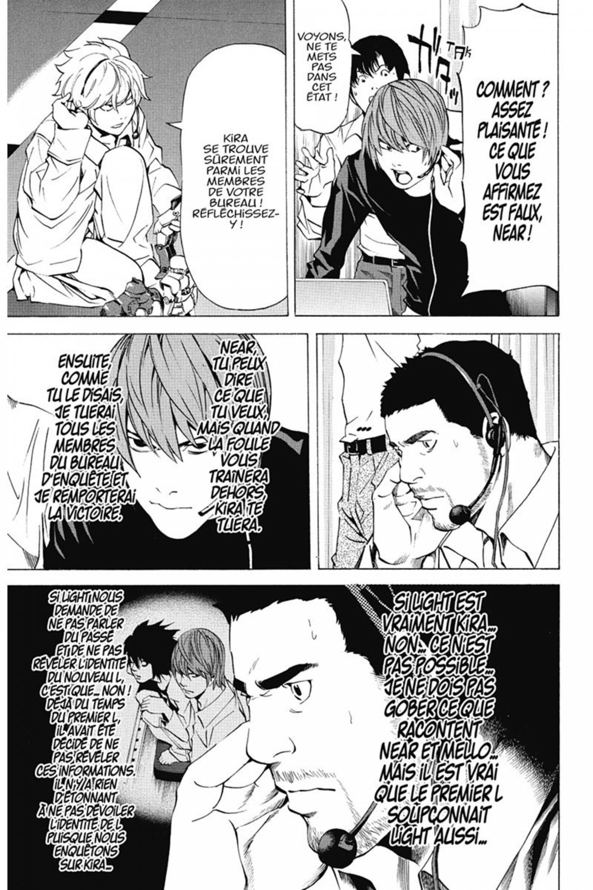 Les réflexions de Near le poussent dorénavant à concevoir de lourds soupçons à l’égard du second L, alias Light, ce qui n’est pas sans incidence sur le bureau d’enquête japonais...