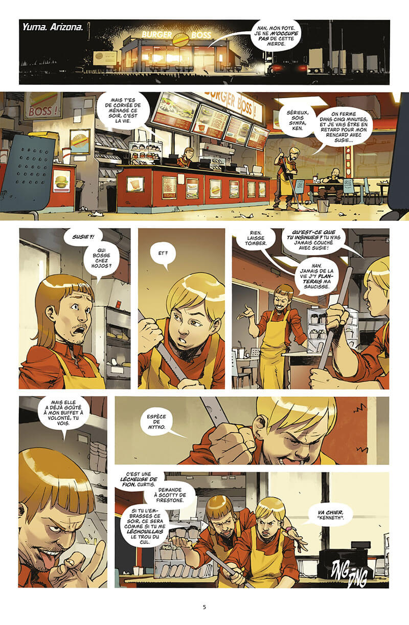 Glory, une jeune américaine élevée dans le monde des routiers américains - les derniers hommes libres - se trouve dans une situation délicate. Pour payer une opération chirurgicale qui sauverait la vie de son père bien-aimé, elle doit trouver de l’argent, beaucoup d’argent, et une seule solution s’offre à elle... Cinq mille kilomètres, quatre braquages, trois jours, deux psychopathes, et une Glory qui en a déjà marre rien que d’y penser. Death or Glory Volume 1 : She’s Got You (#1-5)