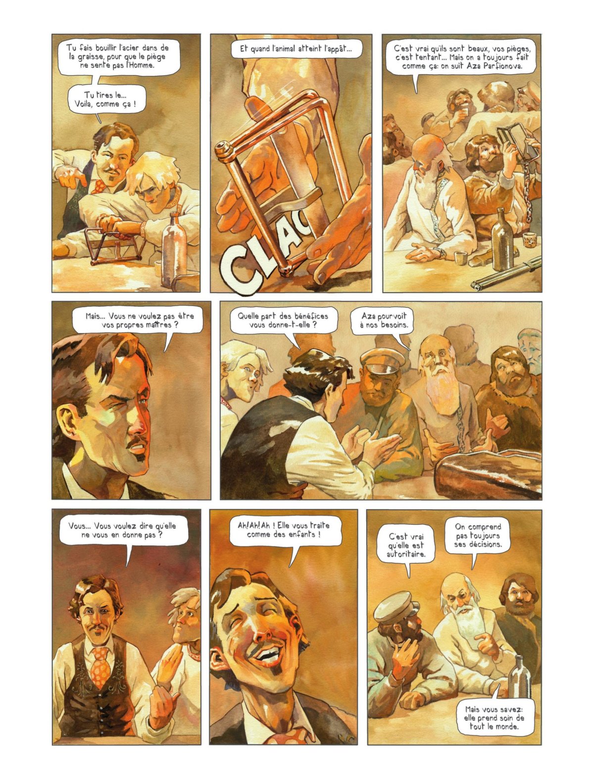 Sibérie, 1899. Aza, une cul-de-jatte excentrique, règne sur les trappeurs au nord du Baïkal. Jason, un aventurier américain, sera son rival pour le commerce des fourrures. Contrairement au western américain qui présente la marche inéluctable de la civilisation, ce western russe montre son échec et sa vanité. C’est pas l’Homme qui dénouait les situations à coup de poings et de colt, mais c’est la Nature qui sera la force de résolution.