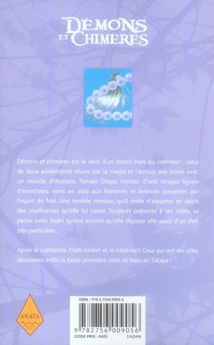 Démons et chimères 1 est le volume 1 de la série Démons et chimères par Natsuki Takaya, paru en 2007. Selon nos informations, il en existe 2 éditions, dont la principale est éditée par Delcourt en 2007.