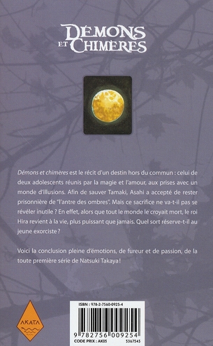 Démons et chimères est le récit d’un destin hors du commun : celui de deux adolescents réunis par la magie et l’amour, aux prises avec un monde d’illusions. Afin de sauver Tamaki, Asahi a accepté de rester prisonnière de " l’antre des ombres " : mais ce sacrifice ne va-t-il pas se révéler inutile ? En effet, alors que tout le monde le croyait mort, le roi Hira revient à la vie, plus puissant que jamais. Quel sort réserve-t-il au jeune exorciste ? Voici la conclusion pleine d’émotions, de fureur et de passion, de la toute première série de Natsuki Takaya !