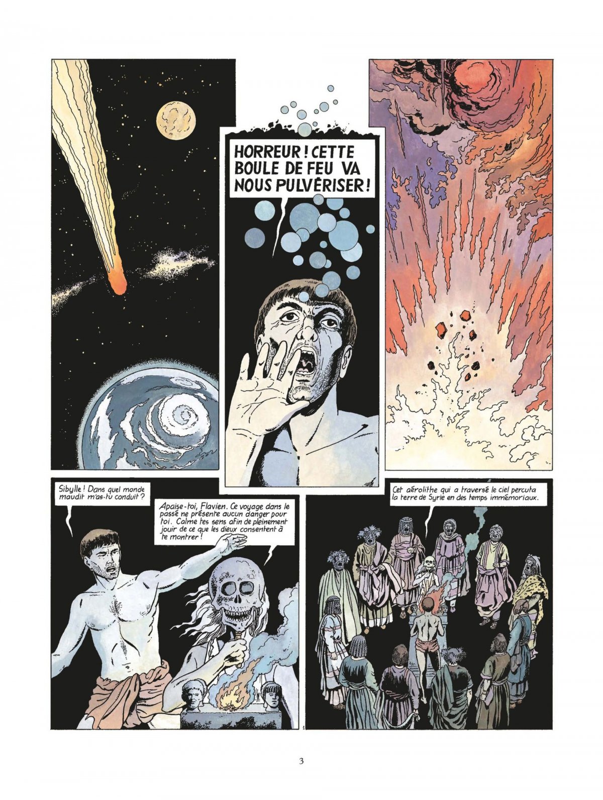 Flavien a accepté de traverser le monde des morts pour découvrir la vérité sur la dernière des Sept Prophéties. Les Sibyllins lui content l’histoire de l’aérolithe sacré nommé le Ba’al d’Emèse. Cette météorite tombée du ciel fut considérée comme un morceau de Soleil et devint l’égal d’un dieu. Il rayonna d’abord sur toute la Syrie, puis bientôt sur le monde. En son nom, des enfants sont enlevés pour être livrés en sacrifice.Dans ce monde trouble et en proie aux tourments, Septime Sévère accède au trône et épouse Julia Domna. La famille envahit alors le Palatin, leur pouvoir s’accroît et les dames d’Emèse enfantent des futurs dirigeant de l’Empire... Jusqu’au jeune Varius Avitus, qui se considère comme le serviteur et l’envoyé du Soleil d’Emèse et qui se rebaptisera lui-même Héliogabale. L’un des plus terribles empereurs qu’ait connu la Rome Antique...La Dernière Prophétie est le grand oeuvre de Gilles Chaillet. Il inscrit avec une jubilation évidente toutes ses connaissances de l’Antiquité Romaine dans un récit passionnant de bout en bout.