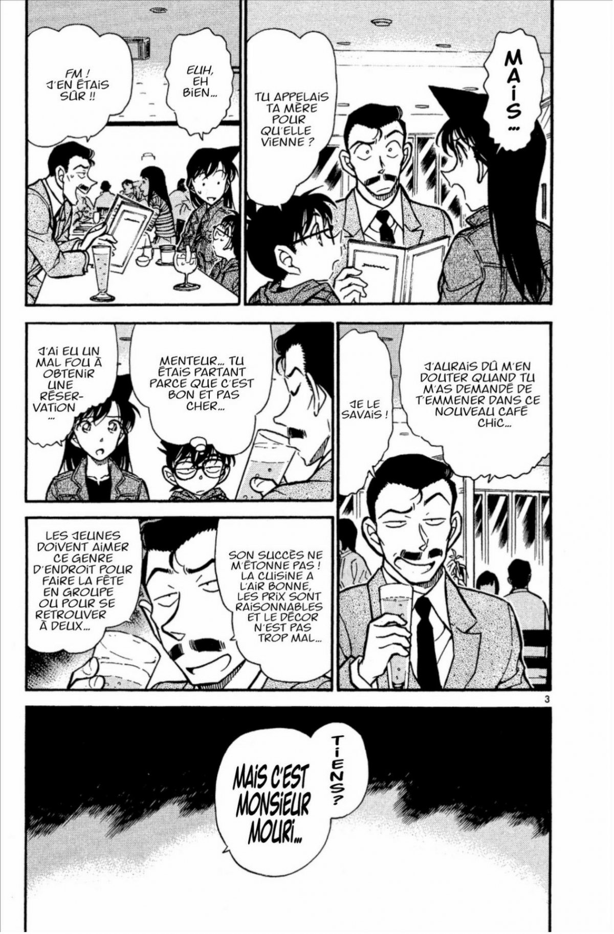 Conan, Ran et Kogoro vont dîner dans un restaurant où des jeunes gens se sont réunis pour faire la fête. Par hasard, Satô, Takagi, Chiba et Yumi font partie du groupe. Mais voilà que le cousin de l’un des convives se fait enlever en plein dîner ! Satô, Conan et les autres mènent l’enquête et parviennent à isoler trois suspects...