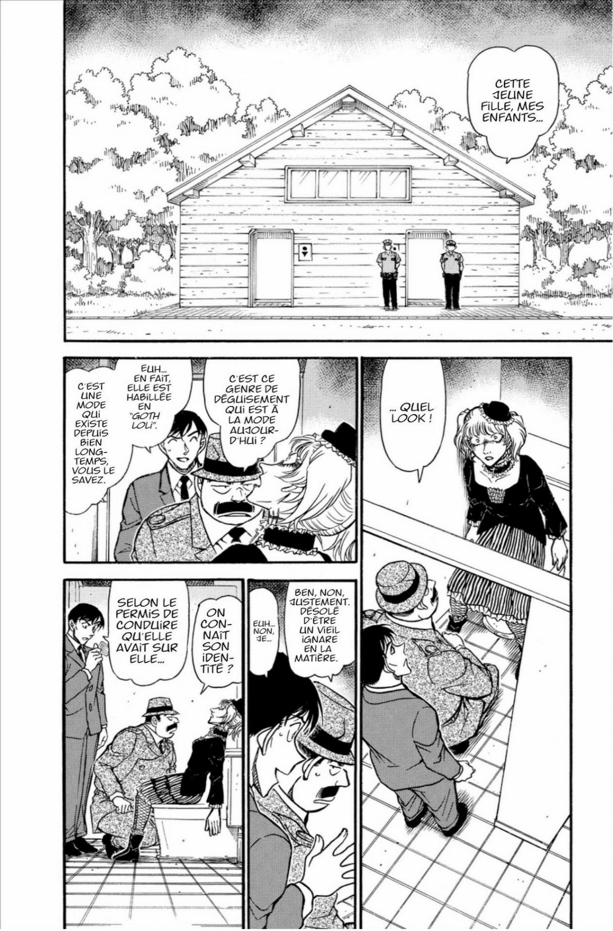 Panique au centre commercial ! Un forcené menace de faire exploser un étage entier ! Celui-là même où se trouvent Conan et ses amis, mais aussi Shûichi Akai et Subaru Okiya. Même Gin est dans les parages !! Conan saura-t-il se sortir de cette situation... explosive ?! Lisez également le dénouement de l’affaire de la Goth Loli ainsi que la suite de l’histoire d’amour entre l’inspecteur Shiratori et mademoiselle Kobayashi !