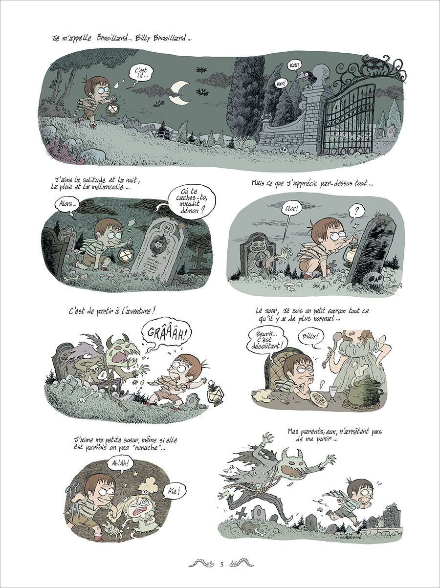 Une série jeunesse, aux effets très spéciaux entre jeux optiques et enquêtes fantastiques ! Il s’appelle Brouillard... Billy Brouillard... et ce qu’il apprécie par-dessus tout, c’est de partir à l’aventure ! Lorsque la nuit vient, il s’éveille pour résoudre des mystères. Ses enquêtes et ses exploits sont célèbres à travers le monde de la nuit. Ses copains sont au nombre de quatre : Samoth, petit démon dévoué, Jack, feu follet timide, Ayram, vampire pacifiste, et Léa, fantôme coquette et jalouse. Mais c’est aux côtés d’une petite sorcière qu’il va mener sa nouvelle enquête : pour suivre une piste, il faut des traces... et pour trouver des traces, il faut une loupe de trouble-vue ! Billy Brouillard parviendra-t-il à empêcher qu’un être malintentionné ne soit doté d’un pouvoir surpuissant ?... Grâce à ta loupe de trouble-vue à filtre rouge, qui permet de voir au travers des choses comme par magie, découvre l’envers du décor. Une multitude de petits détails se révèle, amuse-toi à espionner ceux qui se croient bien cachés.