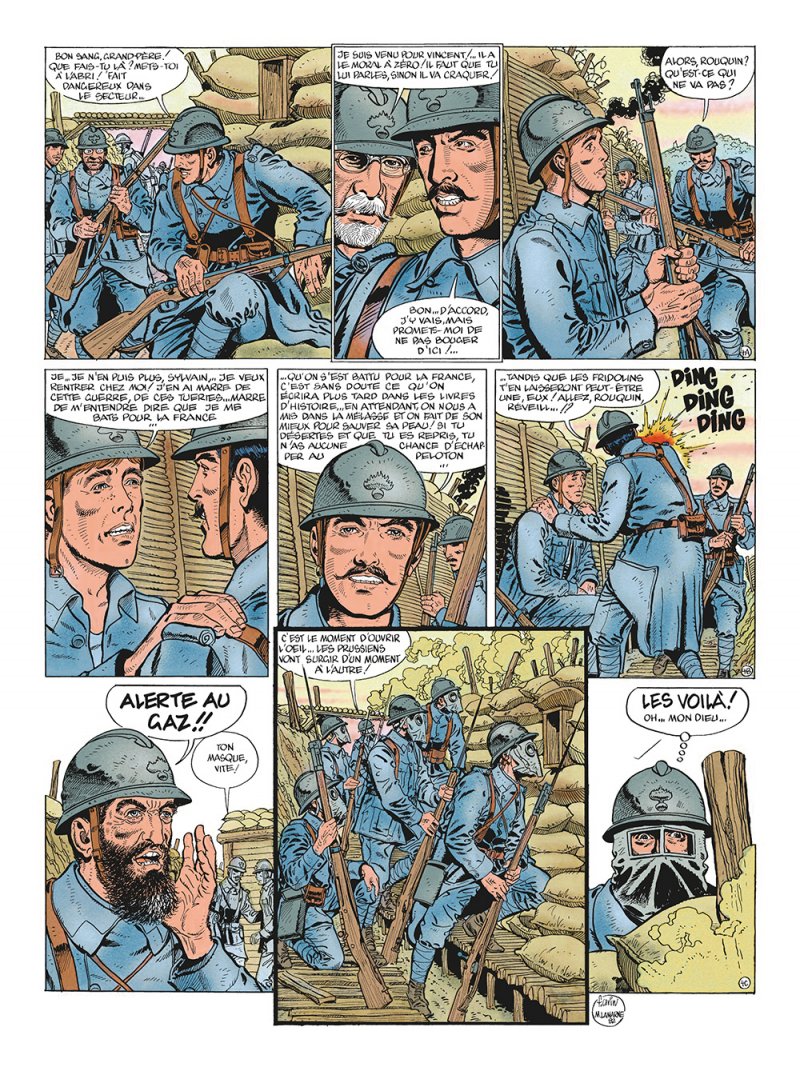 Avec Les Diables Bleus, Francis Carin et Michel Pierret brossentun tableau qui témoignent de la vie quotidienne des soldats français entre 1916 et 1917. Entre aventures héroïques dans les tranchées et enquêtes policières, Les Diables Bleus est une série de fiction publiée dans le journal Spirou dès 1981.