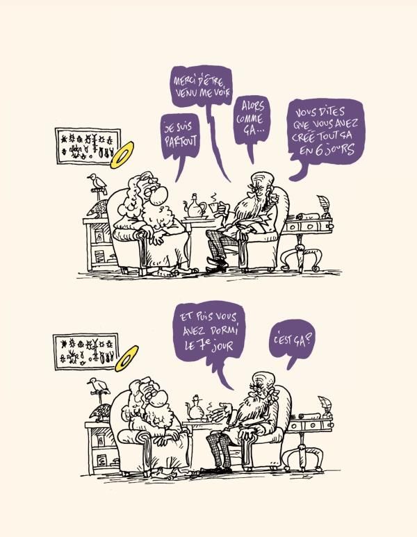 Imaginons que Dieu s’obstine à vouloir penser qu’il a créé le monde et que Darwin s’efforce de le convaincre que ce n’est pas vrai. Comment Dieu pourrait-il lui expliquer que le travail ait été parfois à ce point bâclé ? Le bernard-l’ermite doit se débrouiller sans coquille, l’élan d’Irlande n’a pas survécu, les paons sont vrai-ment trop voyants. Sans compter toutes ces bizarreries : des wom-bats qui défèquent des cubes, des gazelles qui cabriolent en présence du lion, des rats qui font des avances aux chats, des ornithorynques qui semblent avoir mélangé les espèces ou des plantes carnivores qui s’acoquinent avec des chauves-souris. Sans compter tous ces comportements franchement contraires à la morale, les men-songes, les ruses, les vols et bien d’autres turpitudes. Et si toutes ces créatures témoignaient de l’invraisemblable inventivité de la vie, qui essaye, qui risque, qui rate, qui réussit, qui recommence.