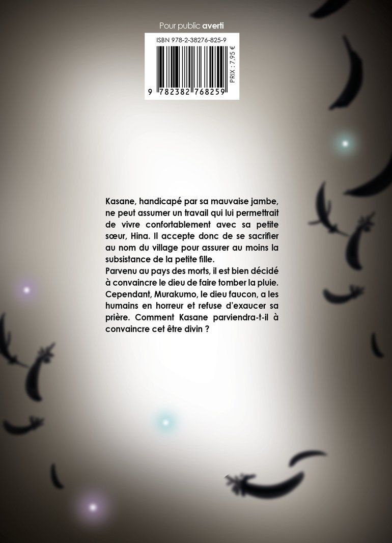 Kasane, handicapé par sa mauvaise jambe, ne peut assumer un travail qui lui permettrait de vivre confortablement avec sa petite soeur, Hina. Il accepte donc de se sacrifier au nom du village pour assurer au moins la subsistance de la petite fille.Parvenu au pays des morts, il est bien décidé à convaincre le dieu de faire tomber la pluie. Cependant, Murakumo, le dieu faucon, a les humains en horreur et refuse d’exaucer sa prière. Comment Kasane parviendra-t-il à convaincre cet être divin ?
