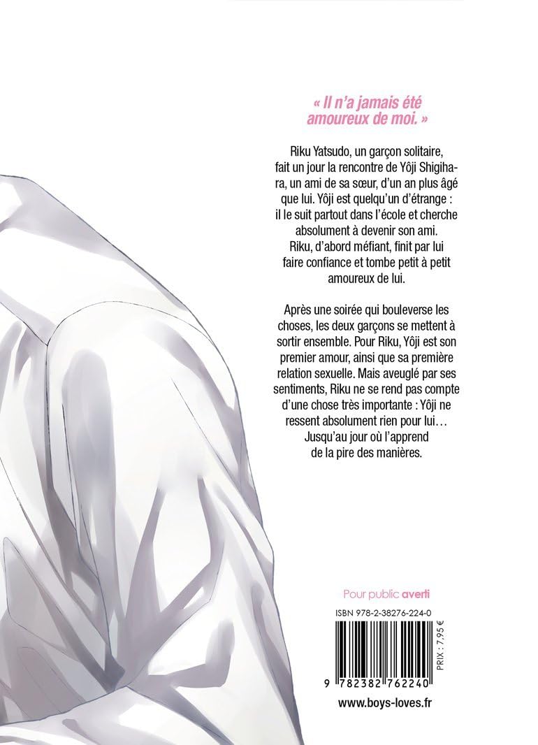 Riku Yatsudo, un garçon solitaire, fait un jour la rencontre de Yôji Shigihara, un ami de sa soeur, d’un an plus âgé que lui. Yôji est quelqu’un d’étrange : il le suit partout dans l’école et cherche absolument à devenir son ami. Riku, d’abord méfiant, finit par lui faire confiance et tombe petit à petit amoureux de lui. Après une soirée qui bouleverse les choses, les deux garçons se mettent à sortir ensemble. Pour Riku, Yôji est son premier amour, ainsi que sa première relation sexuelle. Mais aveuglé par ses sentiments, Riku ne se rend pas compte d’une chose très importante : Yôji ne ressent absolument rien pour lui... Jusqu’au jour où l’apprend de la pire des manières.