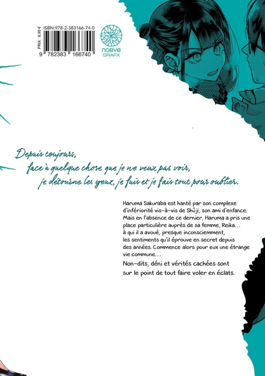 Depuis toujours, face à quelque chose que je ne veux pas voir, je détourne les yeux, je fuis et je fais tout pour oublier. Haruma Sakuraba est hanté par son complexe d’infériorité vis-à-vis de Shûji, son ami d’enfance. Mais en l’absence de ce dernier, Haruma a pris une place particulière auprès de sa femme, Reika... À qui il a avoué, presque inconsciemment, les sentiments qu’il éprouve en secret depuis des années. Commence alors pour eux une étrange vie commune... Non-dits, déni et vérités cachées sont sur le point de tout faire voler en éclats.