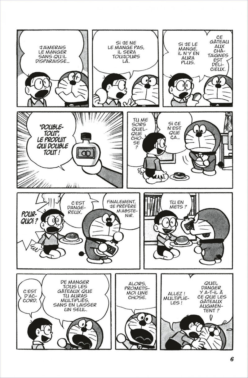 La gourmandise est un vilain défaut. C’est ce que Nobita va découvrir à ses dépens.Un vaisseau spatial à découper dans un magazine et dans lequel on pourrait monter, cela n’existe pas, n’est-ce pas ? Avec DORAemon, les jeux d’enfant peuvent prendre une tournure bien surprenante, voire cataclysmique.