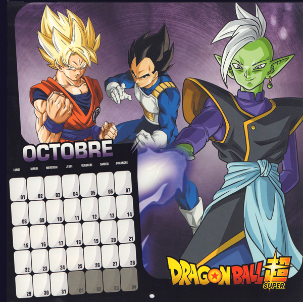 Le calendrier 2018 Dragon Ball Super couvrant les 12 mois de 2018 avec de superbes illustrations inédites !