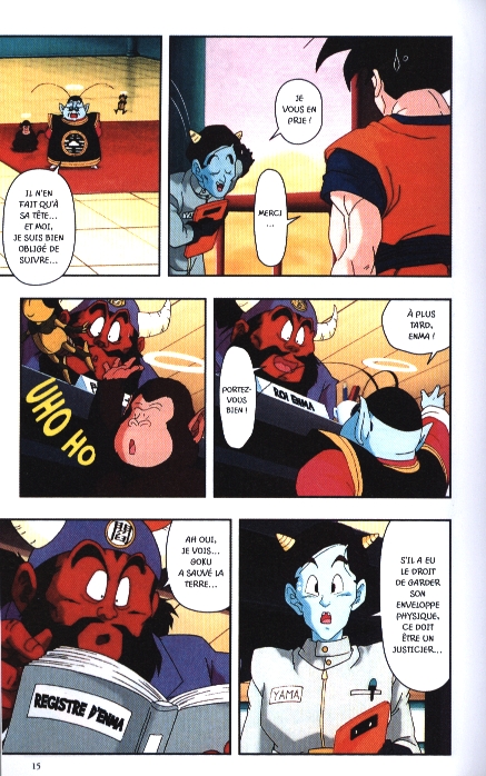 Inédit en manga ! Les faits se déroulent juste après la victoire de Gohan sur Cell et avant l’apparition de Boo. Goku, alors au royaume des morts, va participer à un tournoi d’arts martiaux organisé par le grand Kaio. Ce tournoi réunit les meilleurs combattants décédés des quatre galaxies. Le grand vainqueur aura l’honneur d’être entraîné par Dai Kaio en personne. Goku réussira-t-il cet exploit ? Rien n’est moins sûr, car parmi ses rivaux on compte de très étonnants guerriers.Voici de quoi réjouir les fans de Dragon Ball ! En effet, et à l’instar de DBGT, la partie consacrée au Tournoi de l’Au-delà fut créée uniquement pour le dessin animé et donc n’apparaît pas dans le manga original. C’est donc un cycle inédit que les éditions Glénat ont le plaisir de vous proposer. On y retrouve les meilleurs ingrédients de la série : des combattants étranges, des affrontements dantesques, un tournoi les réunissant et un humour léger et auto-référencé.