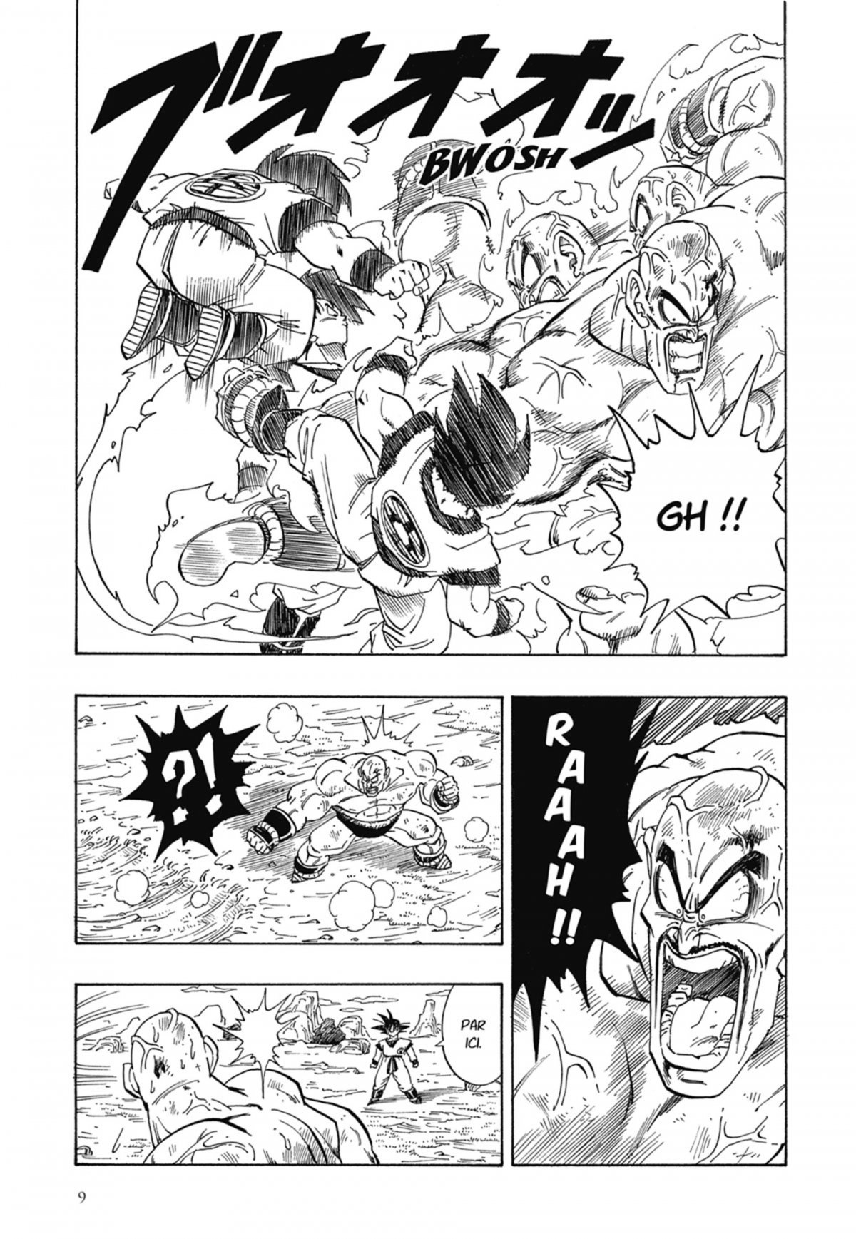 Son Goku est parvenu à sauver son fils in extremis de la colère de Végéta. Sûr de sa puissance, il peut désormais affronter les deux Saïyens. Si Nappa ne semble pas constituer un problème, Végéta s’avère bien plus retors et puissant qu’il n’y paraît. La lutte va être épique !