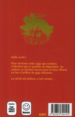 Enfin la fin ! pour terminer cette saga que certains n’hésitent pas à qualifier de légendaire, les auteurs se lachent encore plus et nous offrent un feu d’artifice de gags délirants. La vérité est ailleurs, c’est certain.