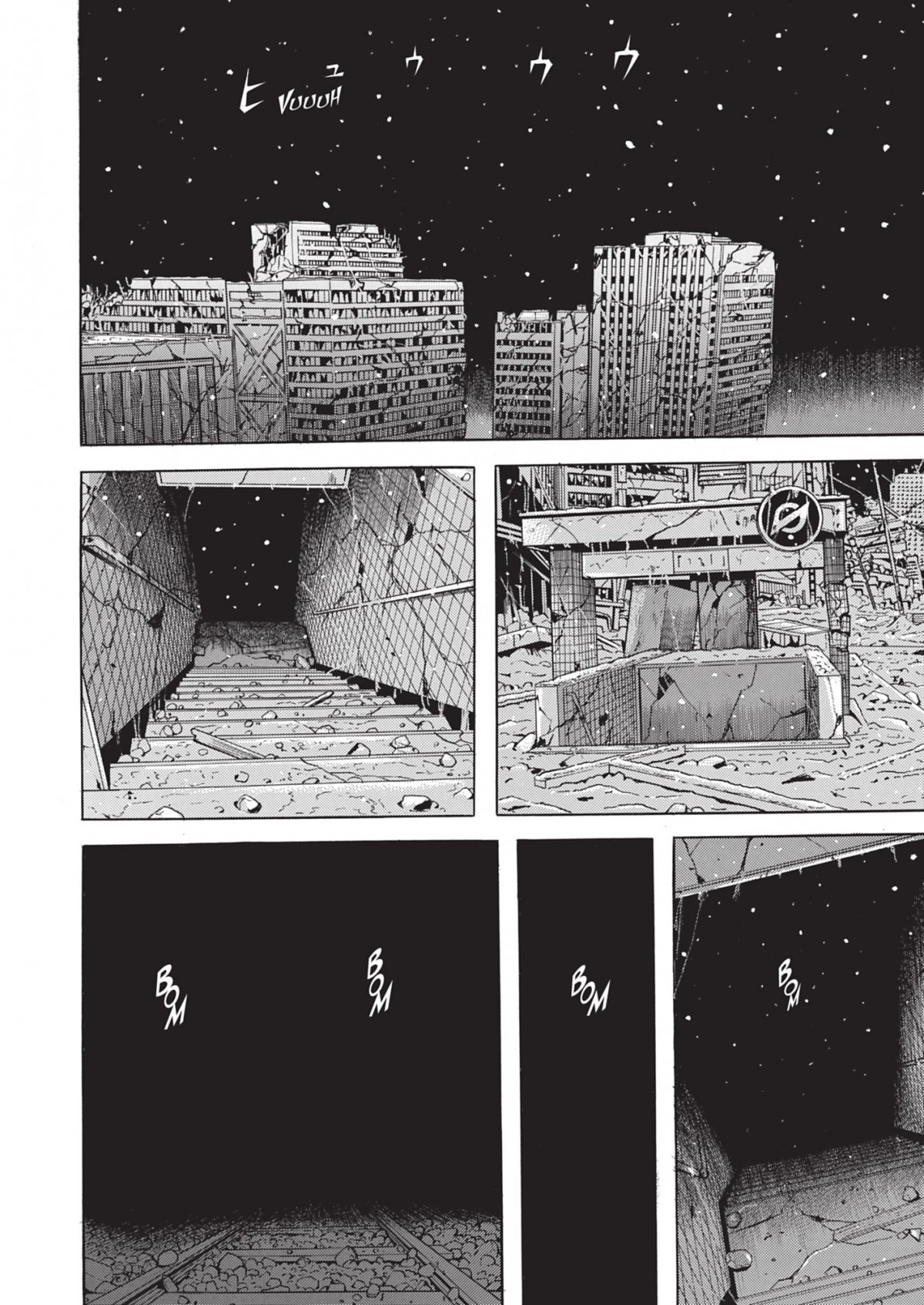 Les militaires qui avaient récupéré Téru et Ako, font atterrir d’urgence leur hélicoptère avant la panne de carburant. Sur place, ils sont hébergés par une femme qui leur raconte le tremblement de terre et le terrible raz-de-marée qui a englouti la moitié de la presqu’île d’Izu... et l’angoisse, la violence, la folie, qui gagna ensuite la population. Désespérée, Ako n’a pourtant qu’un seul objectif en tête : trouver le vaccin qui pourrait sauver son ami Téru en proie à de fortes fièvres. Elle part avec Nimura, le plus terrifiant des deux militaires, à la recherche d’un hôpital. Ce voyage va leur réserver des surprises inattendues, comme cette rencontre avec de drôles de personnages au crâne couturé qui semblent tout droit sortis d’un film d’épouvante... Rien de tel pour réveiller la frénésie de Nimura !