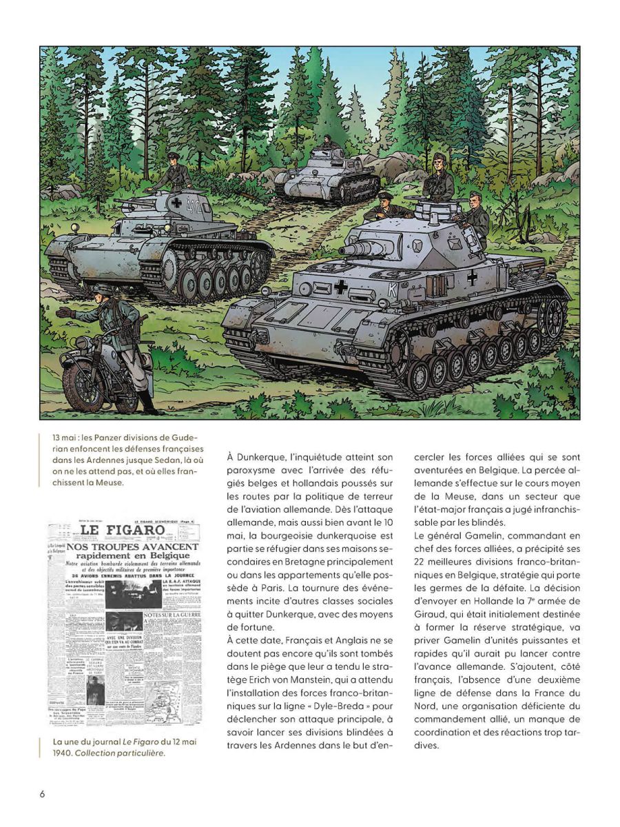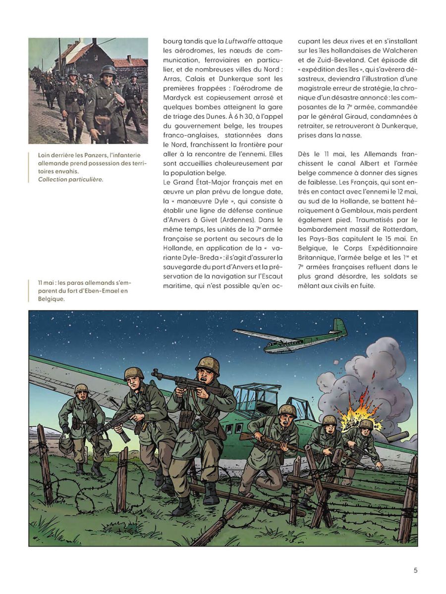 Avec un premier chapitre qui évoque le 10 mai 1940, l’invasion de la Belgique, de la France et du Pays-Bas par l’Allemagne nazie. Le reste de l’album se situe à Dunkerque et aux environs, il retrace la bataille de Dunkerque à partir du 20 mai, l’Opération Dynamo du 26 mai au 3 juin, la résistance héroïque du Fort des Dunes, Dunkerque sous l’occupation avec la vie quotidienne, la libération en mai 1945 par des troupes canadiennes et tchèques.